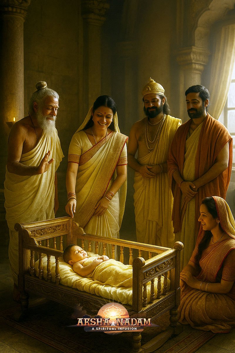 Chapter 12 of Skandha 1, titled Parikshith Janma, celebrates the auspicious birth of King Parikshit, the grandson of Arjuna and the last hope of the Kuru dynasty. His life is a divine gift—preserved in the womb by Lord Krishna himself, who protected the fetus from the deadly Brahmastra weapon released by Ashwatthama.