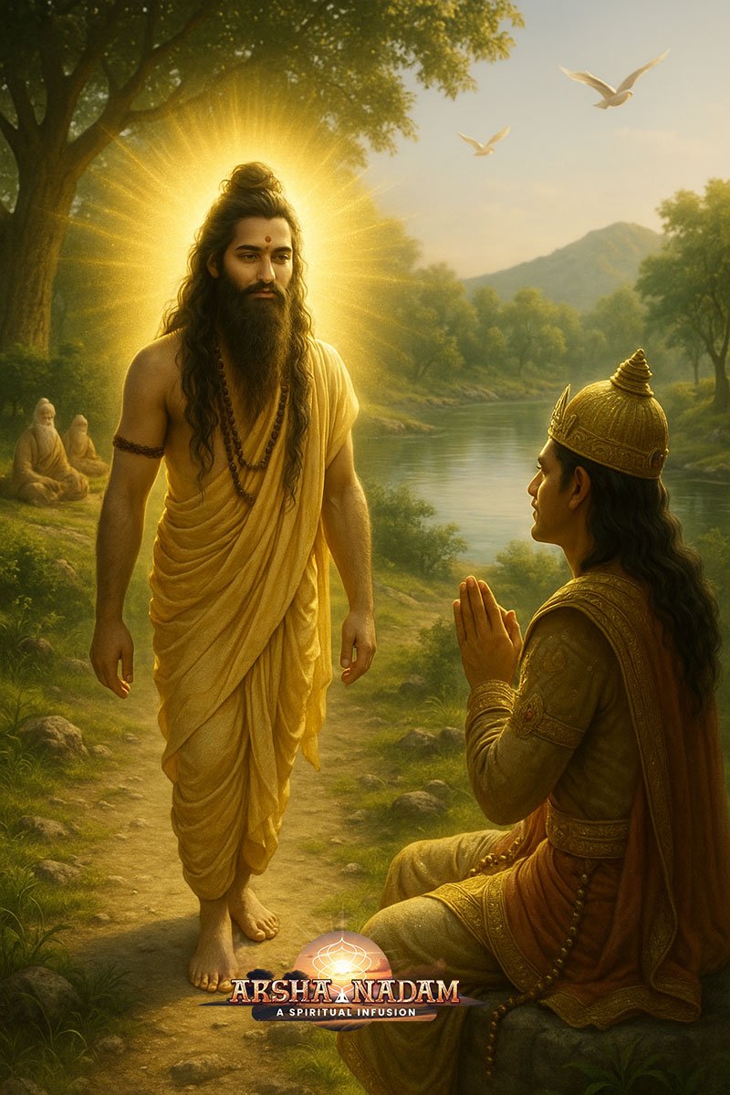Chapter 19 of Skandha 1, titled Sri Suka Agamanam, marks a profound moment in the Srimad Bhagavatham—the divine meeting of King Parikshit and the enlightened sage Sukha Brahmarishi.